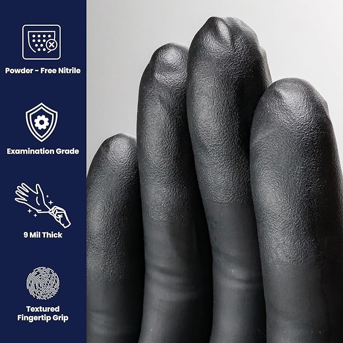 Adenna Dark Light Disposable Nitrile Gloves – 9 Mil, Heavy Duty Work Rubber Glove, Non-Latex & Powder Free, Black