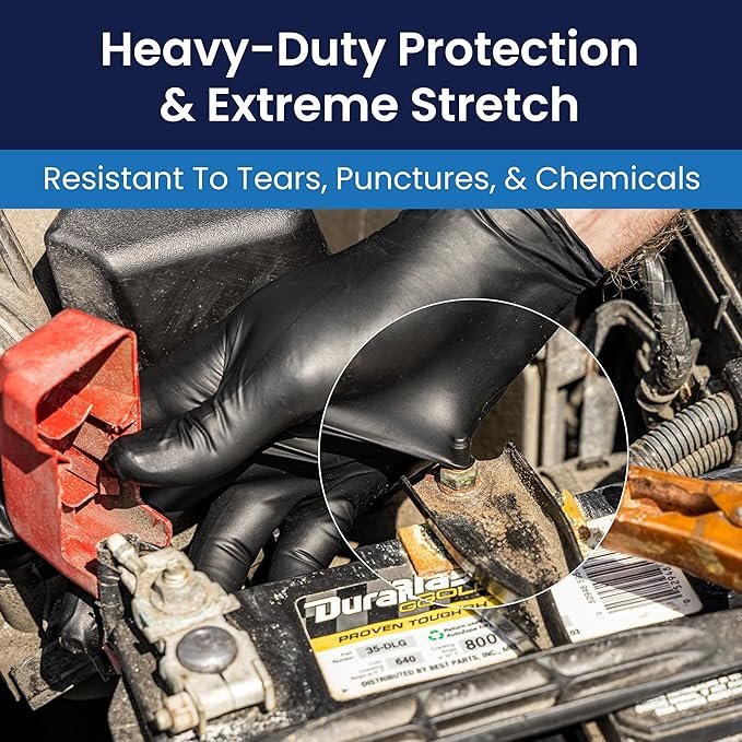 • HEAVY-DUTY PROTECTION: With a 9-mil thick finger construction, these nitrile gloves offer superior resistance to tears, punctures, and chemicals. Engineered for tough jobs, they protect against solvents and light chemicals, ideal for industrial use.