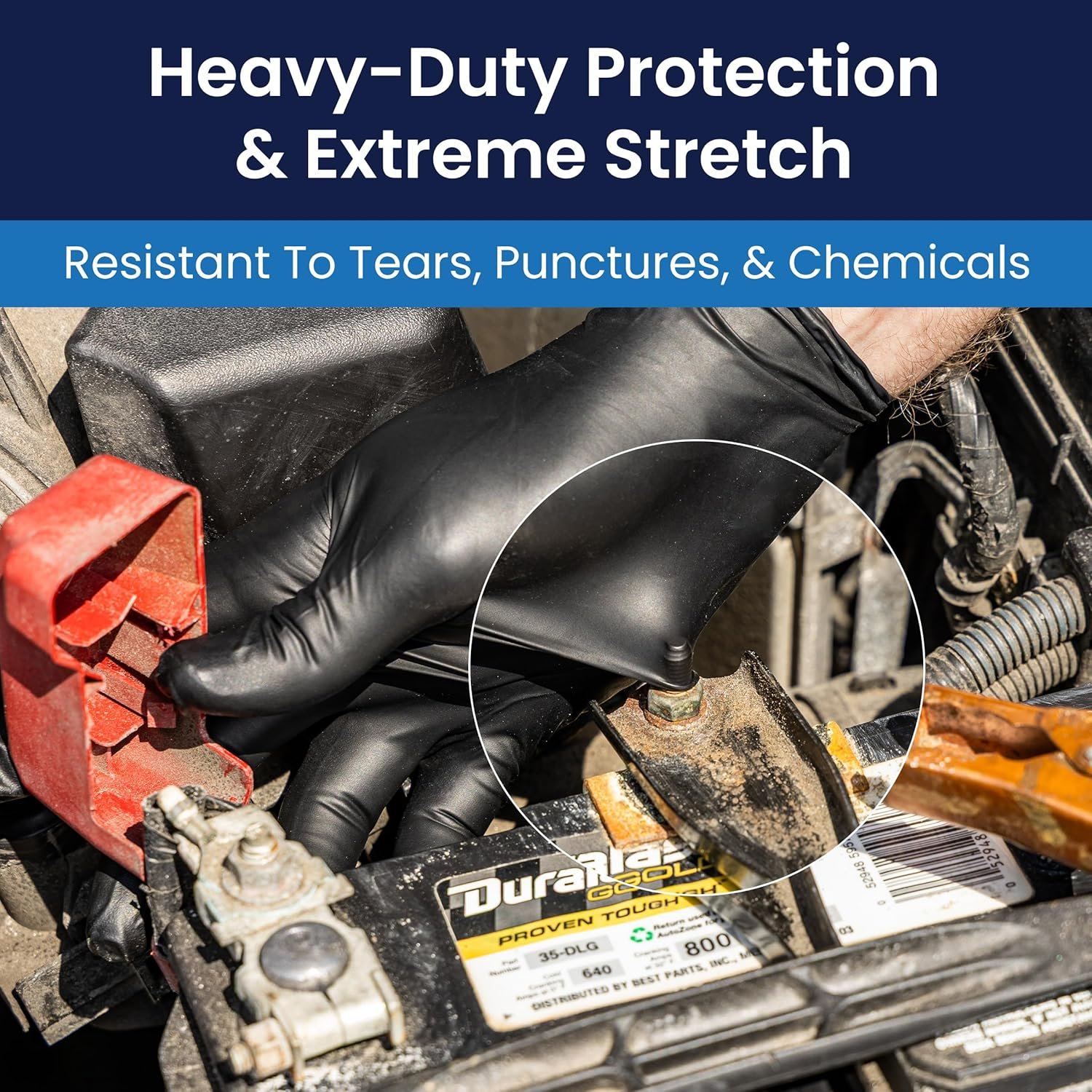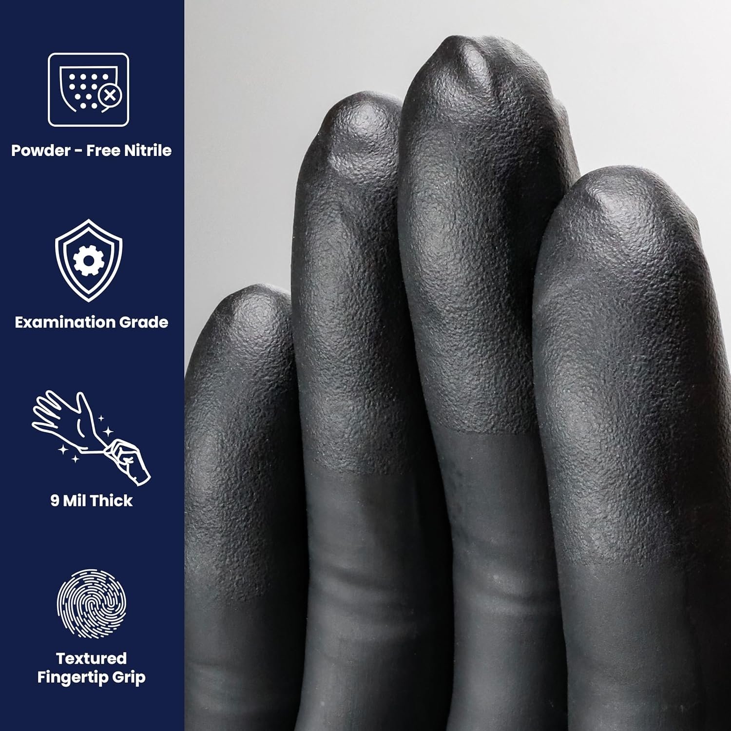 - HEAVY-DUTY PROTECTION: With a 9-mil thick finger construction, these nitrile gloves offer superior resistance to tears, punctures, and chemicals. Engineered for tough jobs, they protect against solvents and light chemicals, ideal for industrial use.