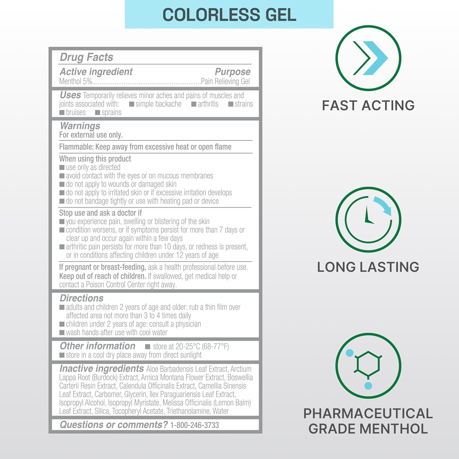 - Colorless 4 fl oz gel tube is one of the most popular formats, well-suited for application on small and large muscle areas