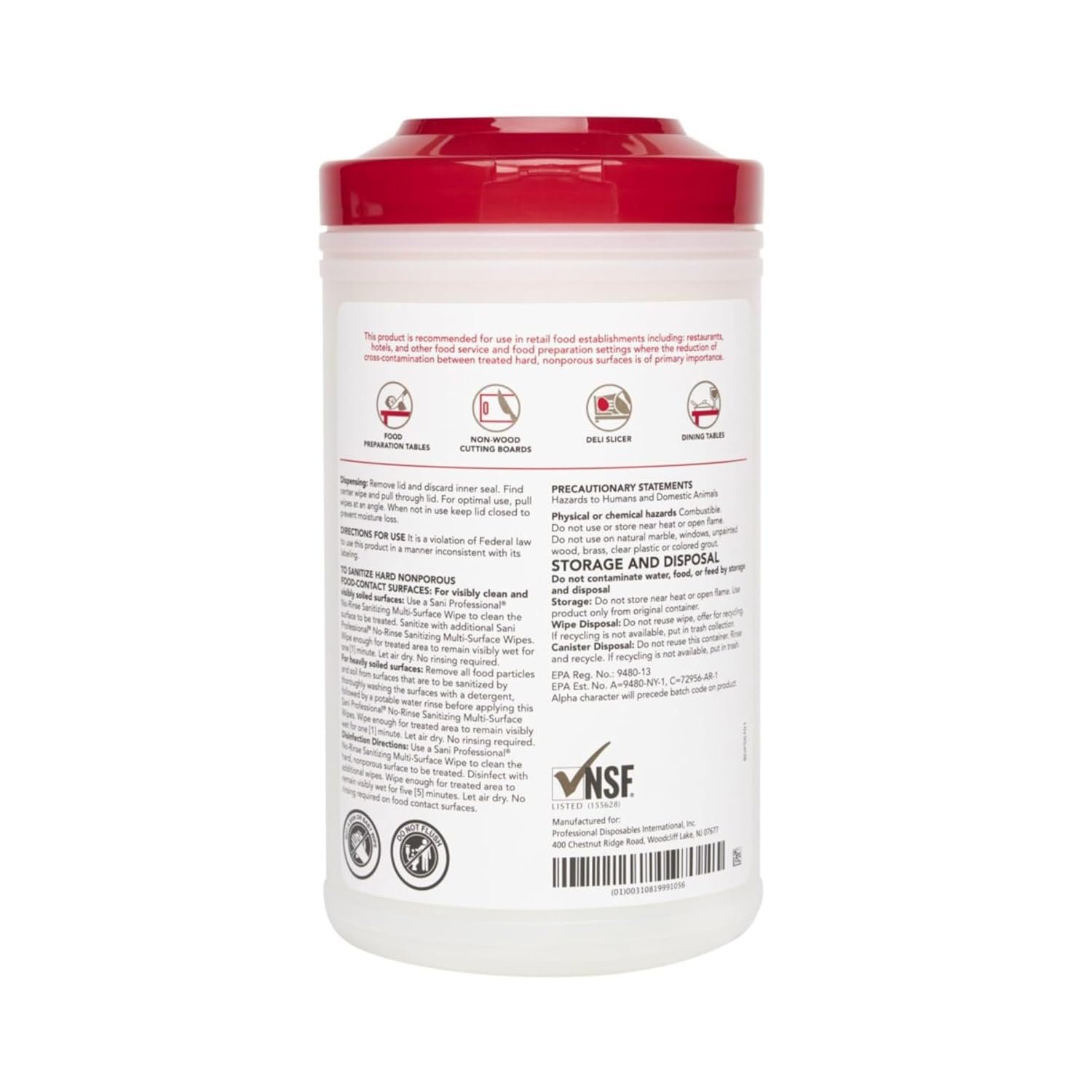 What sets PDI Sani-Professional Sanitizing Wipes apart is their exceptional versatility. From food contact surfaces to high-touch areas in busy restaurant settings, these wipes handle it all with ease. They’re safe for use on a variety of surfaces, including wood, stainless steel, and plastic, making them an indispensable tool for professional kitchens and dining establishments. With no-rinse required, you can confidently use these wipes without interfering with food safety protocols.