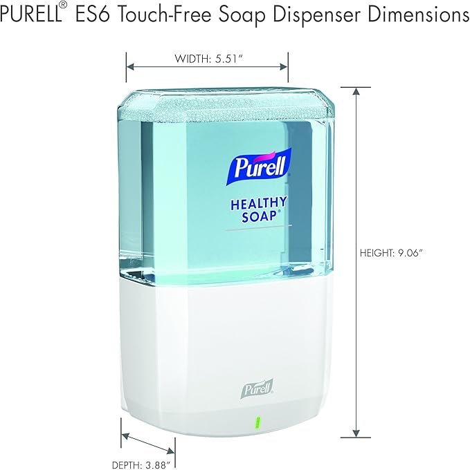 - Case Includes: 1 – PURELL ES6 Automatic Soap Dispenser in White, adhesive mounting tape, and 4 C-cell batteries (refills sold separately)