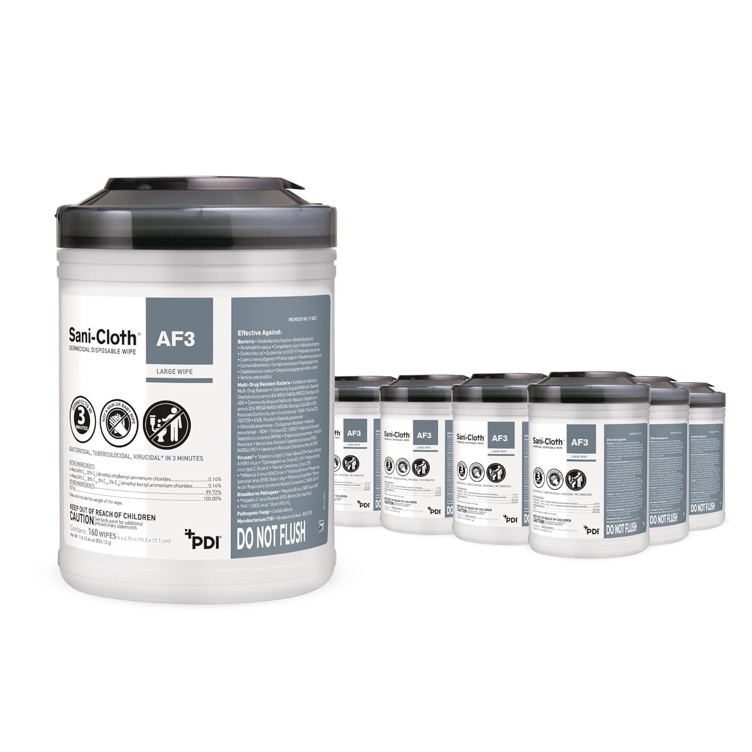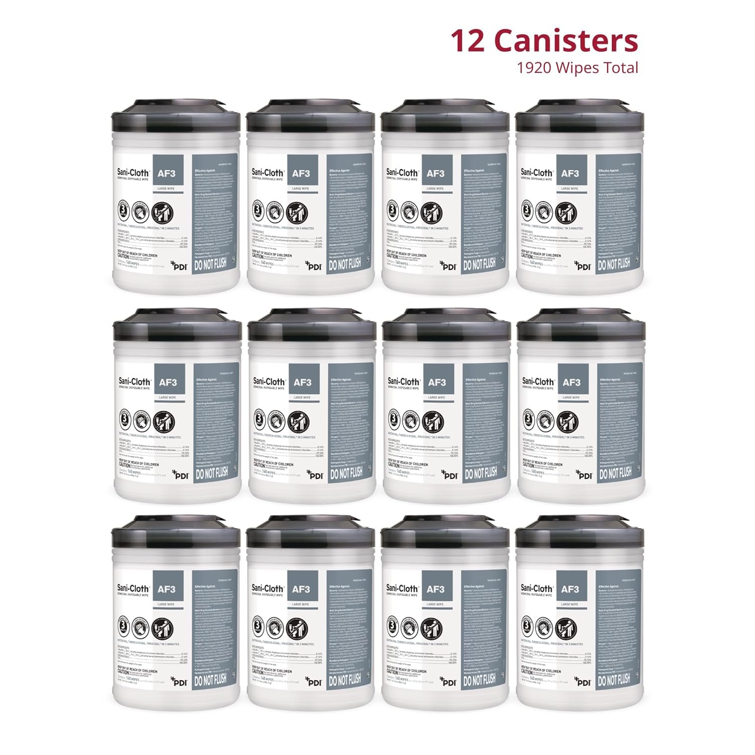 Sani-Cloth AF3, Surface Disinfecting Wipes, Fragrance Free, Alcohol-Free, 12 Canisters, 160 Large Wipes/Canister (1920 Total)