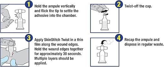 - LATEST SKIN REPAIR METHOD: SkinStitch tissue adhesive forms a barrier that aids in minimizing scarring. It cares for injuries and incisions quickly while producing cosmetically pleasing results.