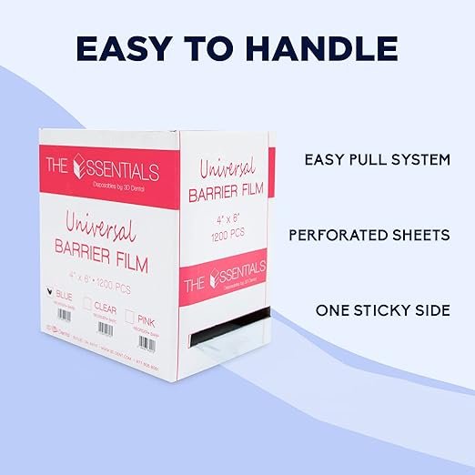 The Essentials Barrier Film Roll with Dispenser Box, 4″x 6″ Perforated Sheets Adhesive Barrier Film for Dental, Medical & Tattoo Purposes, 1200 pcs, Clear