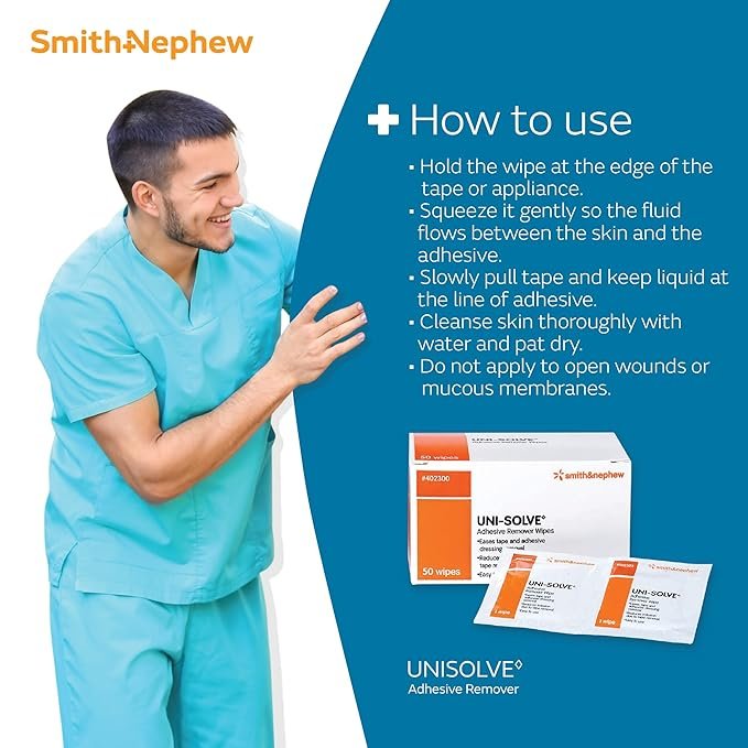 - Medical Adhesive Remover: Uni-Solve Adhesive Remover Wipes Soften Residue From The Appliances And Dressing Tape You Use Every Day. They Minimize Skin Trauma Caused By Adhesive Removal And Keep Your Care Routine Running As Smoothly As Possible.
